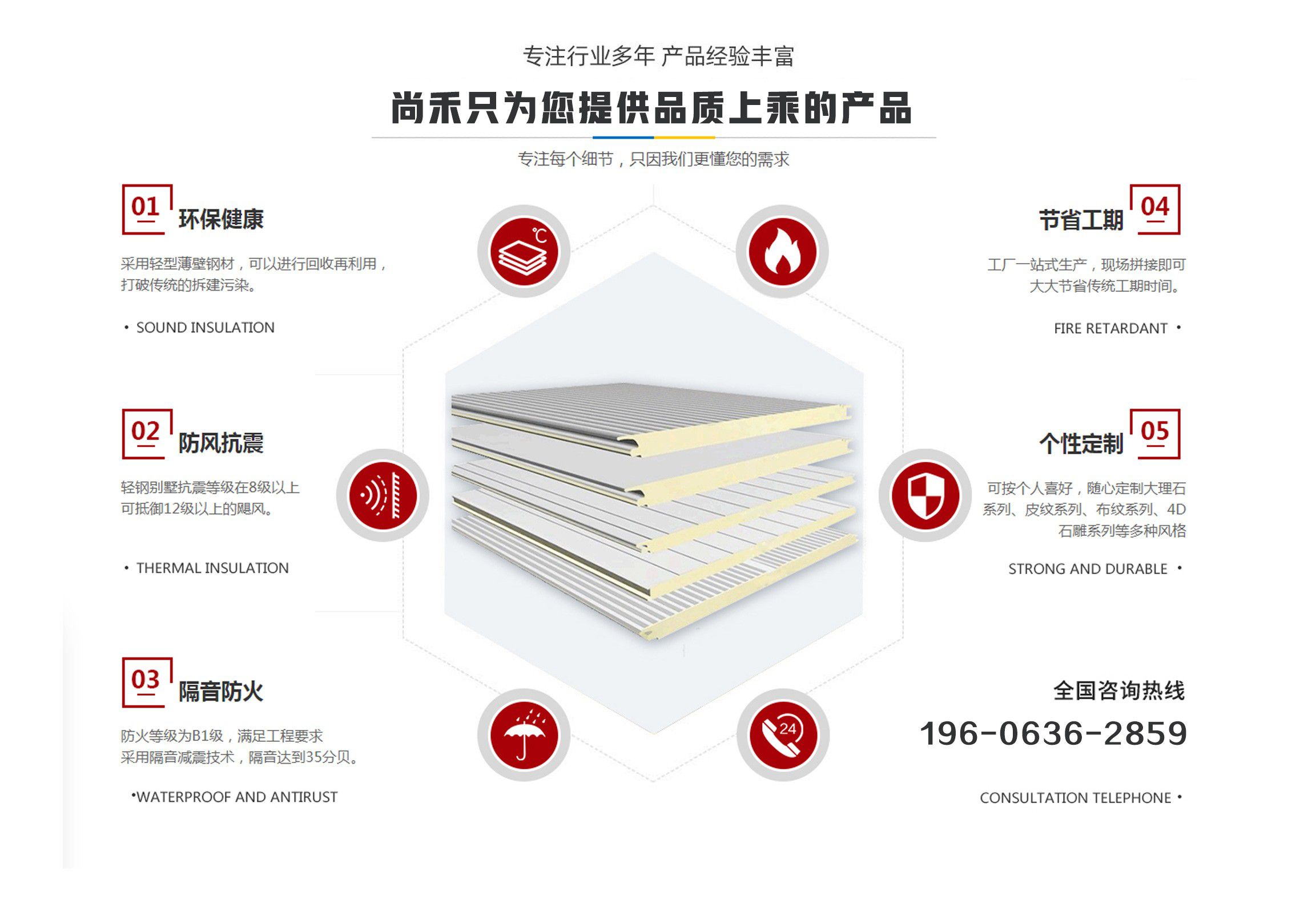 山東尚禾經貿有限公司是集板材設計、研發、生產、施工、一體化的科技公司,并在同行業中率先通過了質量、環境、安全管理體系認證。公司2011年投入資金2000余萬元引進世界先進的聚氨酯節能板連續生產線、意大利進口發泡系統,采用六組份在線自動操作混合澆注技術,在線一次性完成社會配料中心或工廠的配比混合工藝,并可以根據溫度在線自動調整,從而生產處與眾不同的高強度、節能型、綠色環保的聚氨酯夾芯板。(其使用年限高于同行業其他品牌5-10年) 公司主要經營范圍包括聚氨酯夾芯板,PU夾芯板,冷庫板,潔凈板,聚氨酯冷庫板,冷庫保溫板的設計、生產、銷售、技術指導、安裝及一體、以及進出口業務,是中部六省最大的綠色節能建材生產基地。聚氨酯夾芯板年產200萬平方米、PU夾芯板、冷庫保溫板500萬平方米、鏈整產業綜合實力,開創了六省至中西部創新型中小名企總部基地,并將著力推進中國中西部地區集成房屋住宅產業化發展進程。 科技創新、節能典范。千萬間始終秉承“誠信、合作”的企業文化精髓,長期致力于鋼板材結構節能建筑產業,愿與社會各界攜手合作,共鑄綠色、環保美好未來。 產品具有良好的絕熱、阻燃、隔音、環保、耐久性能,可廣泛應用于工業、商用建筑內外墻、以及民用建筑外墻保溫、空調通風系統、專用防火保溫門等領域。 我們始終秉承...